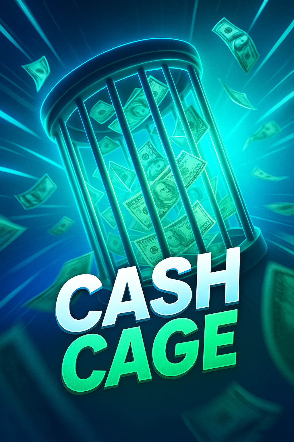 Dynamic Neon Cash Cage Illustration with Luminous Effects