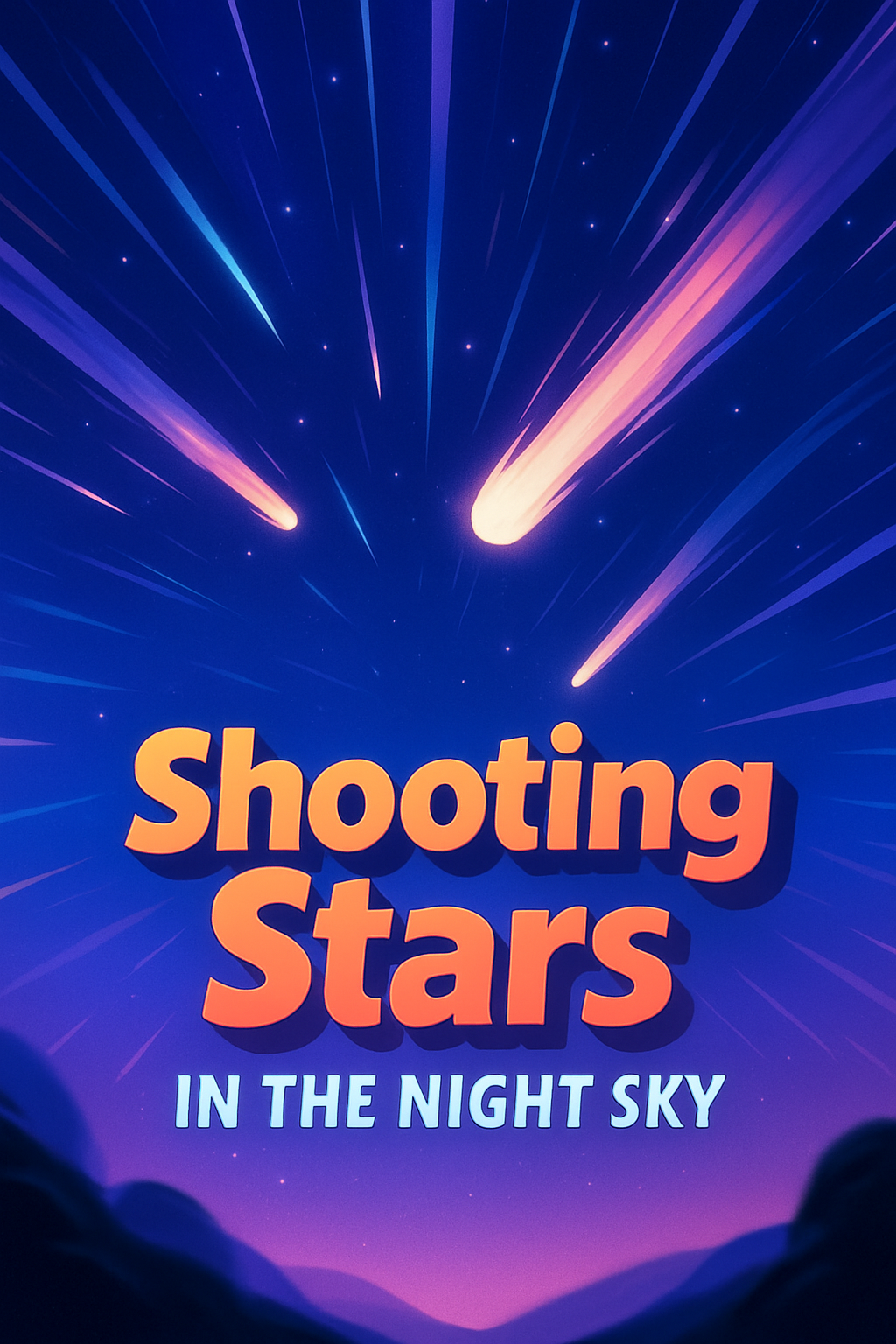 /Collection: /by davooda/Type: PNG/A vibrant night sky filled with shooting stars, showcasing dynamic lines radiating from the center. The title stands out with bold, colorful typography against a smooth gradient background.