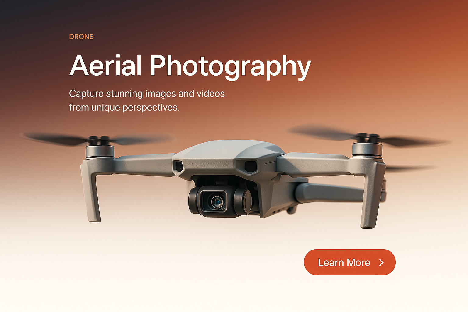 /Collection: /by davooda/Type: PNG/A stylish drone icon featuring a high-quality illustration, set against a two-color gradient background. The design includes a bold title and a clear call-to-action button.