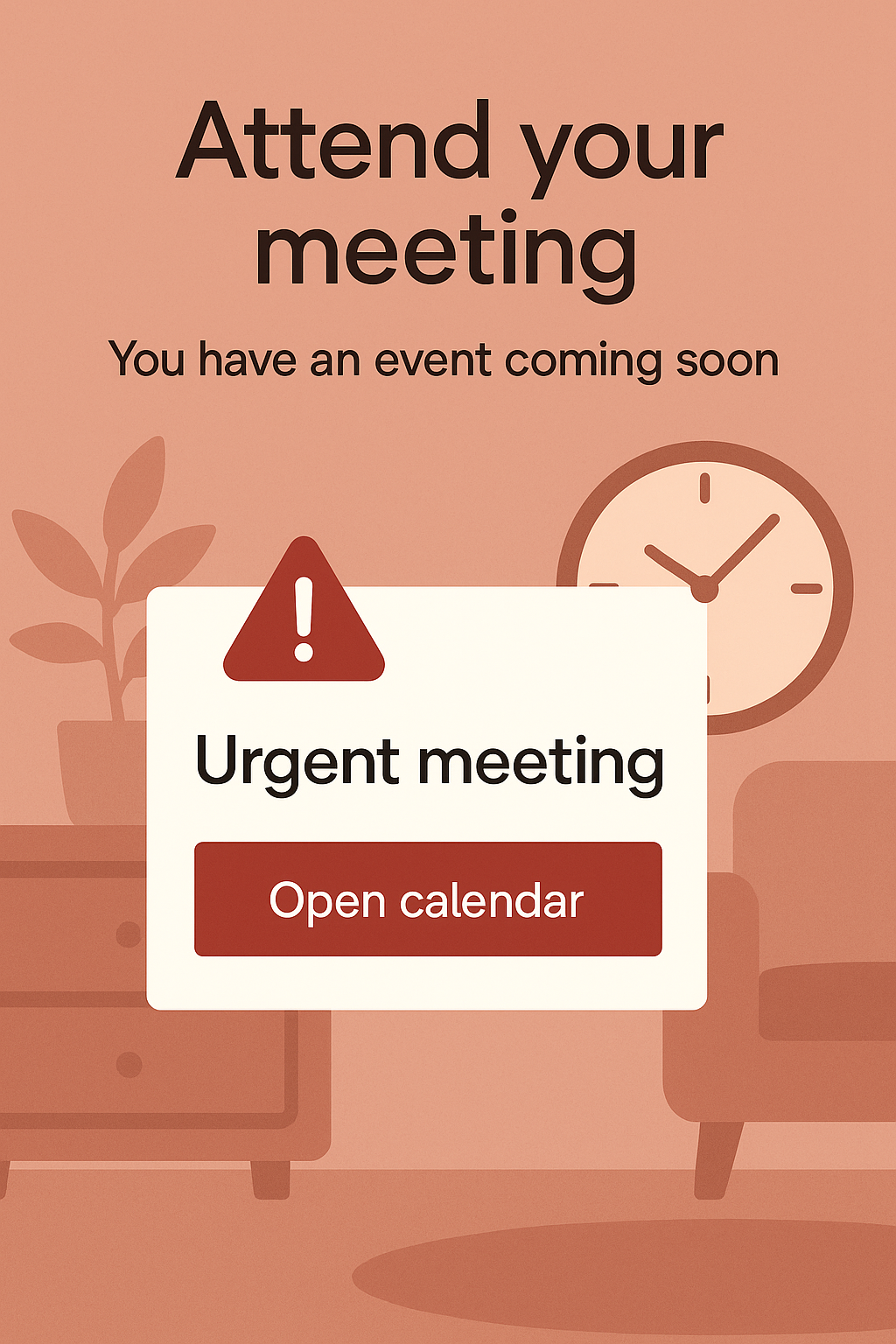 /Collection: /by davooda/Type: PNG/A visually appealing reminder graphic designed to alert users about an upcoming meeting. The warm color palette and simple illustrations create an inviting atmosphere, suitable for digital notifications.