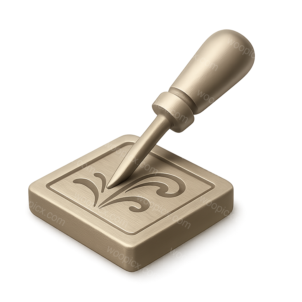 /Premium/Collection: /by davooda/Type: PNG/A visually striking 3D icon showcasing a metal engraver tool poised above a carved design. The image features a three-quarter view with a transparent background, emphasizing the intricate details of the engraving.