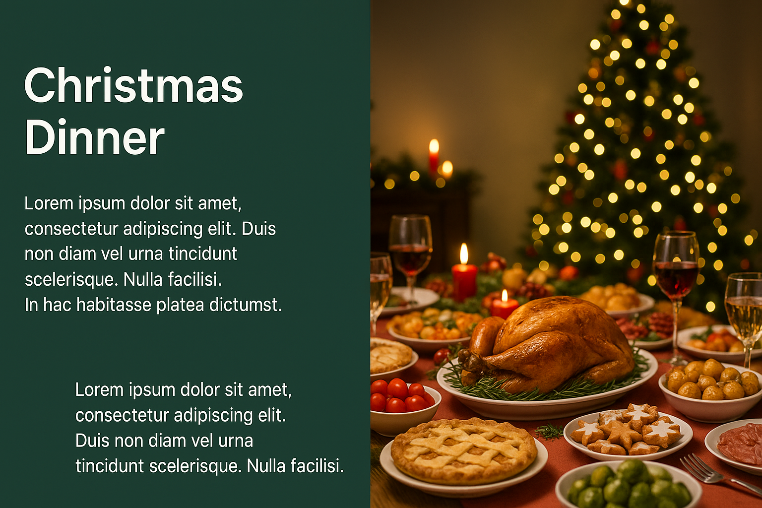 Warm and inviting image of a Christmas dinner table adorned with festive dishes, perfect for holiday-themed content or seasonal marketing.