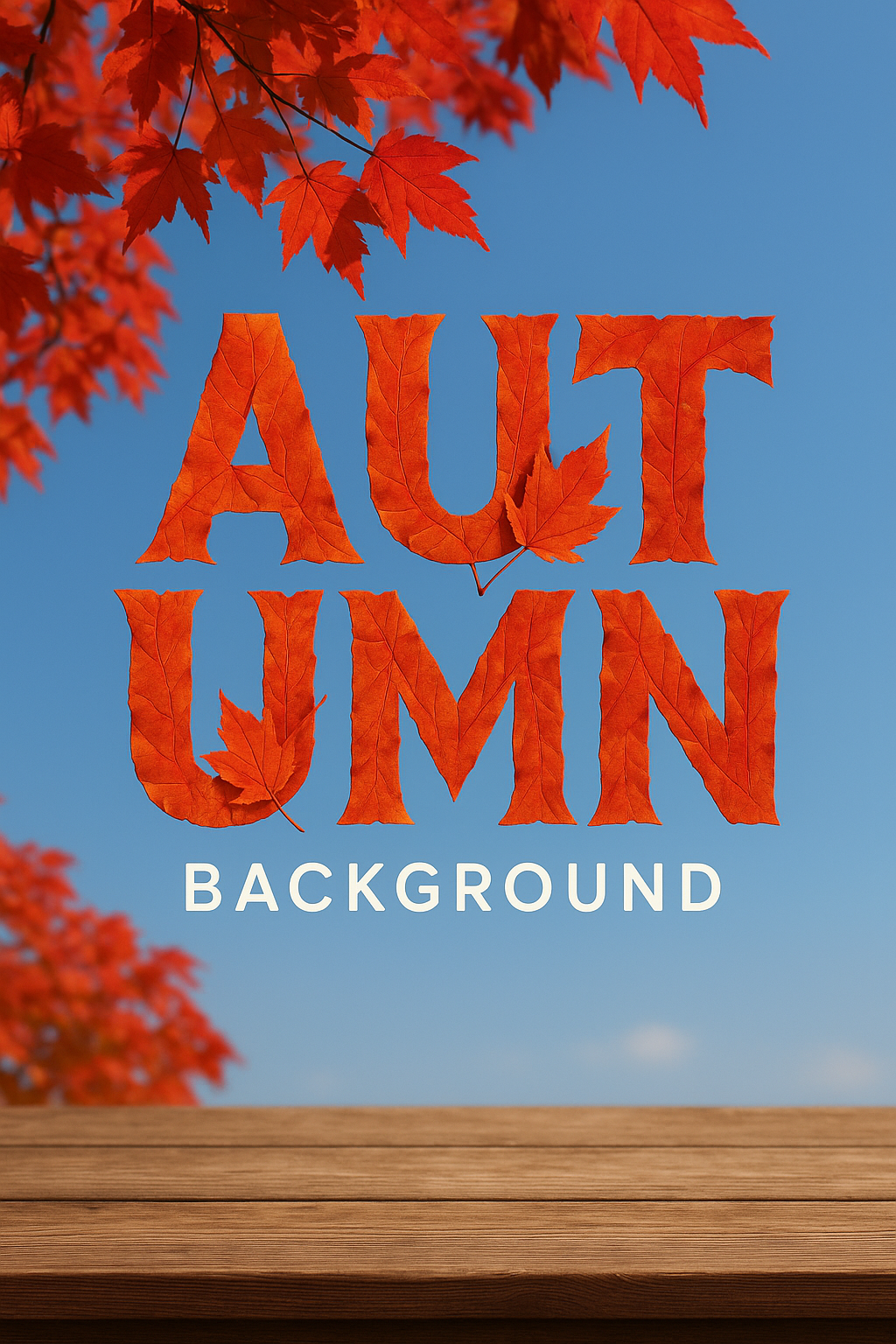 A visually appealing autumn-themed background featuring vibrant red leaves and bold typography, ideal for seasonal promotions or social media posts.