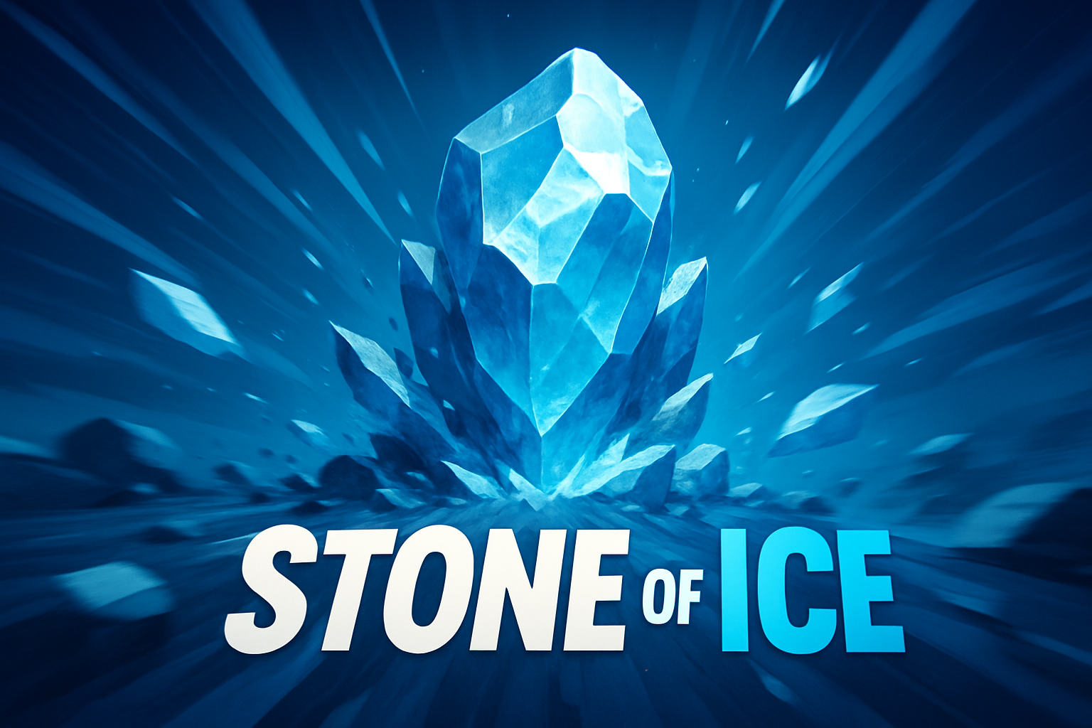/Collection: /by davooda/Type: PNG/A captivating 3D representation of a crystalline stone of ice, set against a dynamic background with rays of light emanating from the center. The composition features a smooth gradient and engaging typography that emphasizes the title.
