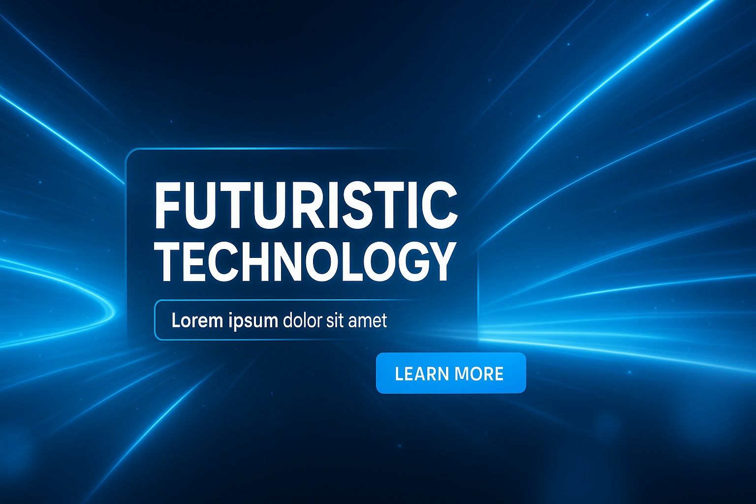 Dynamic promotional graphic featuring sleek blue light trails and bold typography, ideal for tech-related marketing or website headers.