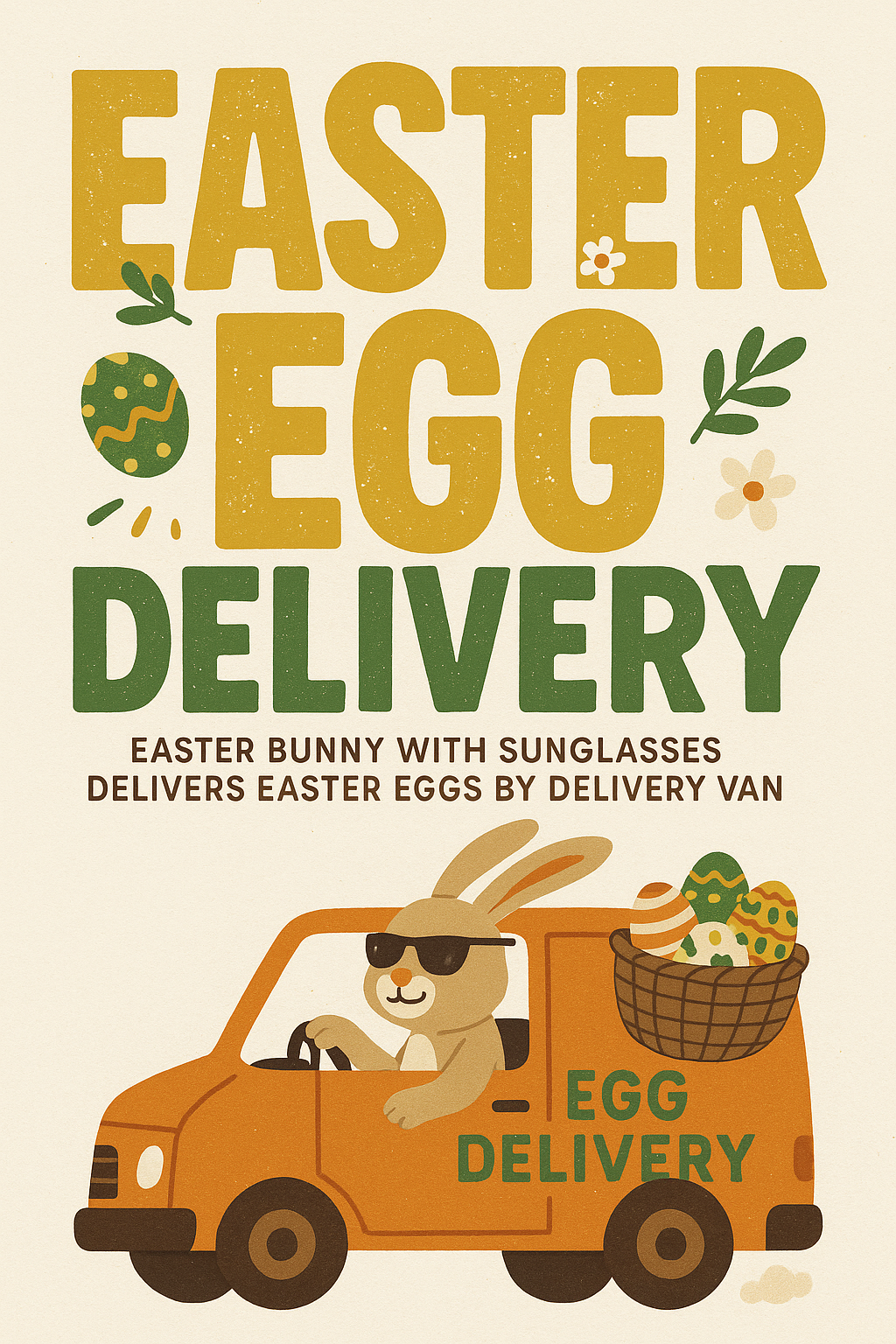 Playful Easter Egg Delivery Graphic Featuring a Bunny in Sunglasses