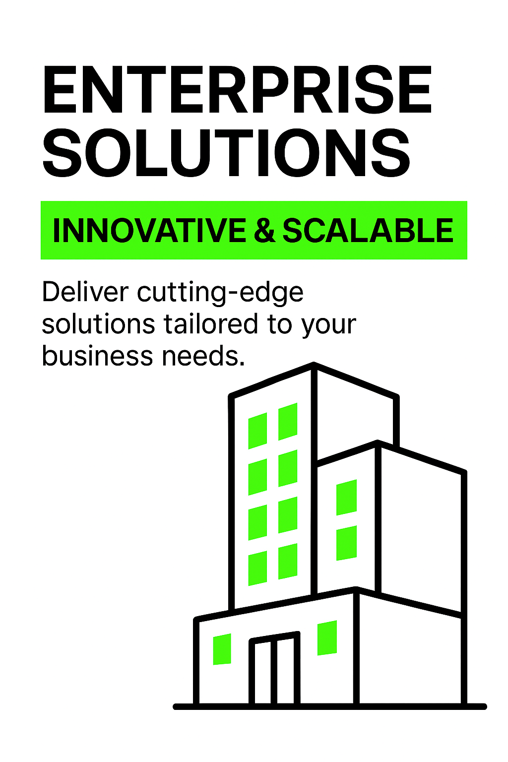 Minimalist promotional graphic highlighting innovative and scalable enterprise solutions, ideal for business marketing and presentations.