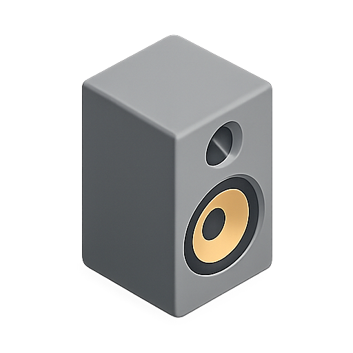 A sleek, modern speaker icon featuring a simple geometric design with a gray exterior and a golden speaker cone, ideal for tech-related graphics and apps.
