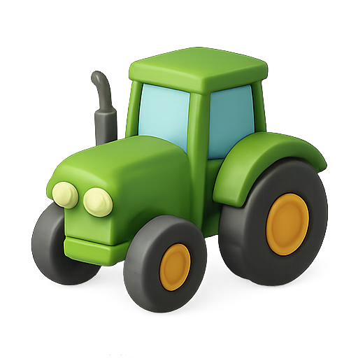 3D-rendered cartoon tractor toy featuring vibrant colors and a playful design, ideal for children's products or educational materials.