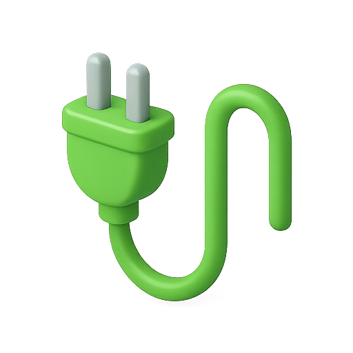 A modern, stylized icon of a green electric plug with a flexible cable, suitable for digital applications and environmental themes.