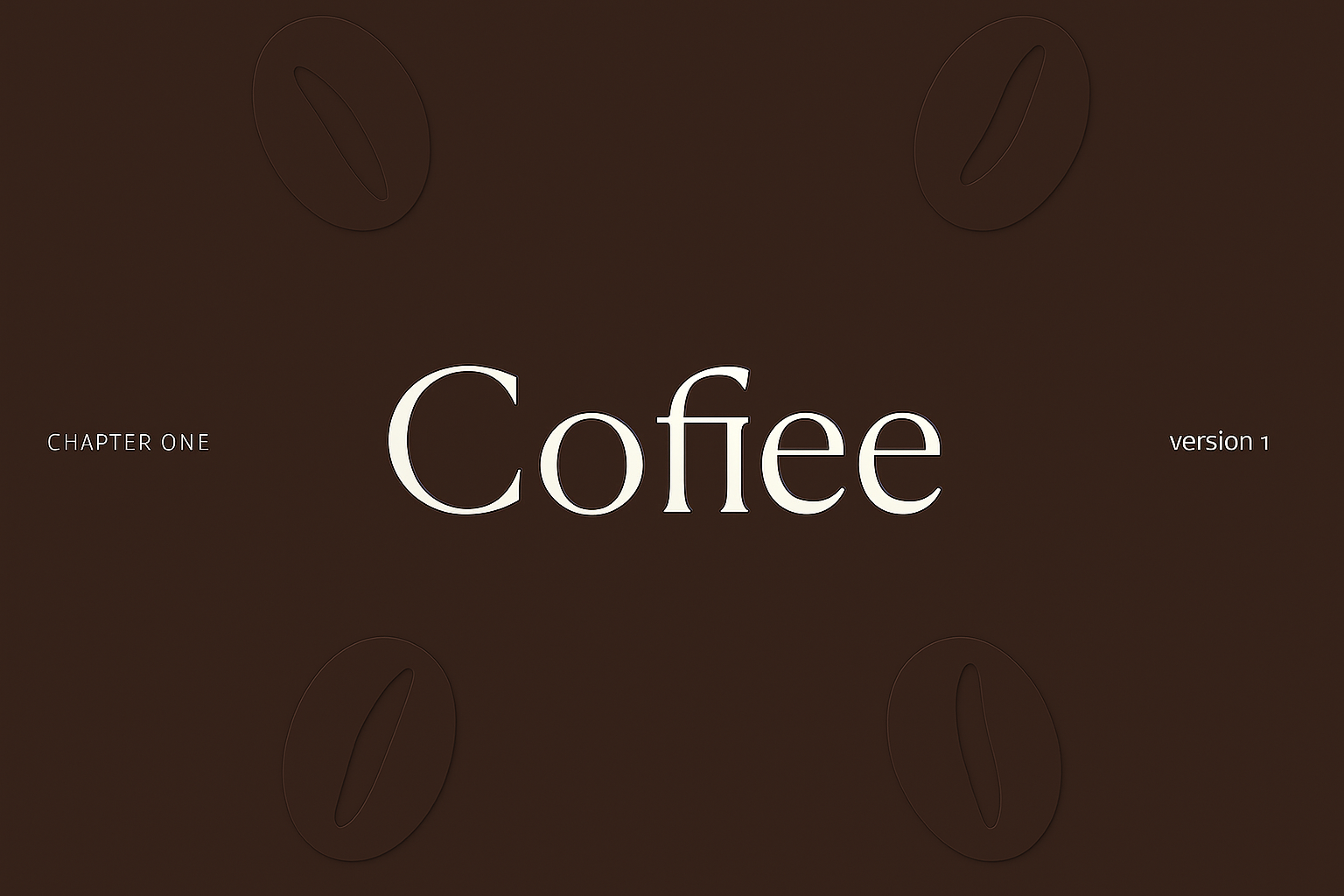 A sophisticated design featuring the word 'Coffee' in elegant typography. The background is a rich brown, complemented by subtle coffee bean motifs, creating a warm, inviting atmosphere.