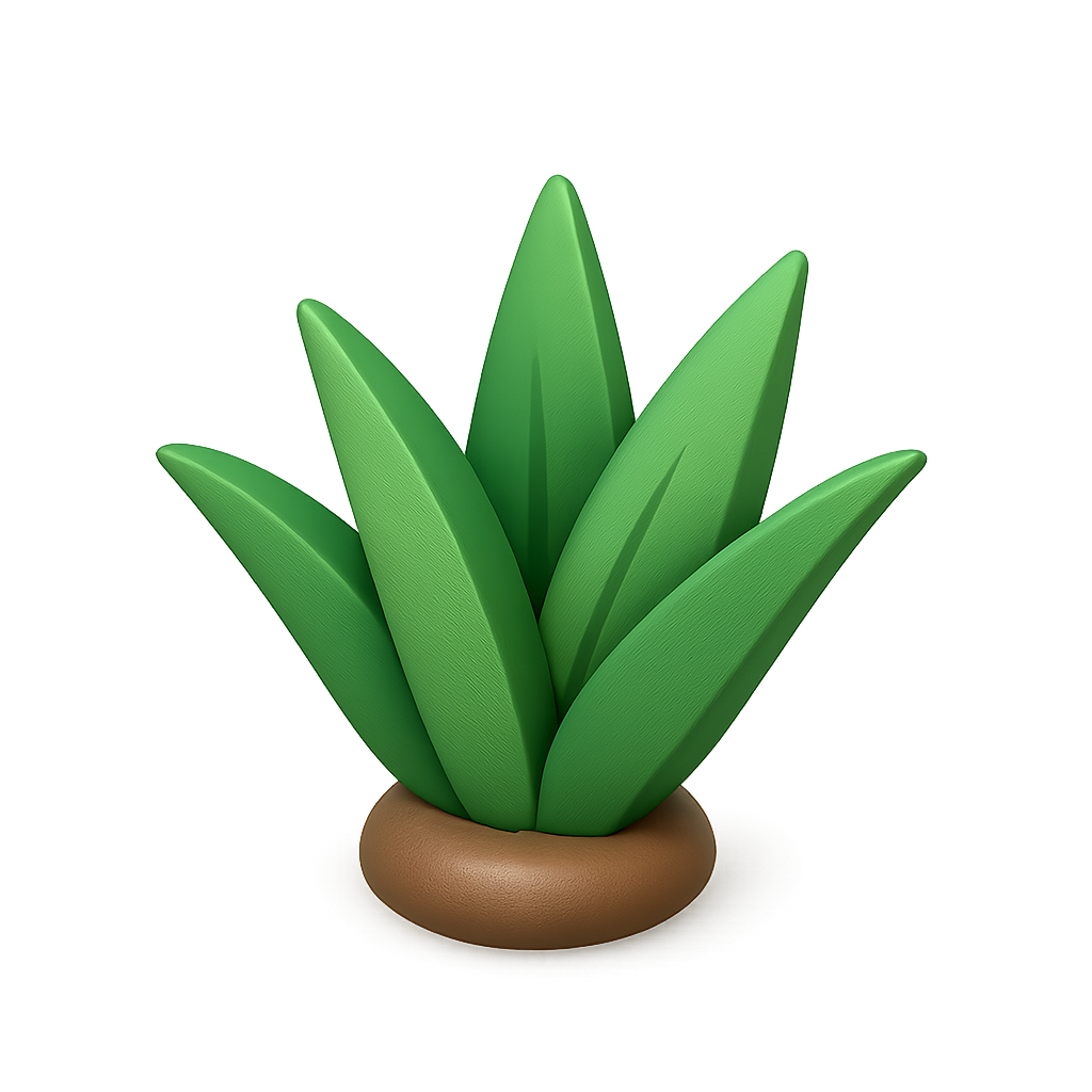 /Collection: /by davooda/Type: PNG/A visually striking 3D icon of an agave plant, featuring vibrant green leaves and a textured brown base. The design showcases a three-quarter view with a smooth, isometric style and a soft glow.
