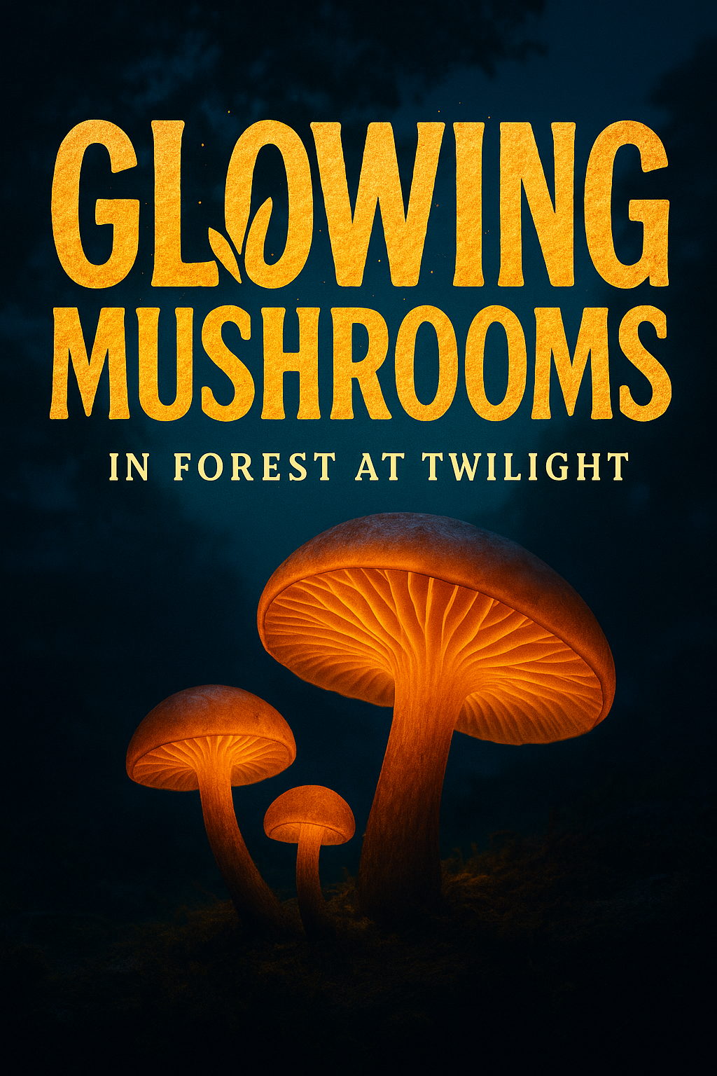 /Collection: /by davooda/Type: PNG/A captivating image showcasing glowing mushrooms in a twilight forest setting. The visual style features vibrant colors and enchanting lighting, ideal for fantasy-themed projects or nature-focused content.