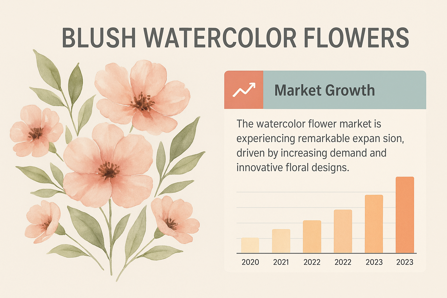A charming illustration featuring blush watercolor flowers alongside a market growth chart, ideal for floral industry presentations and reports.