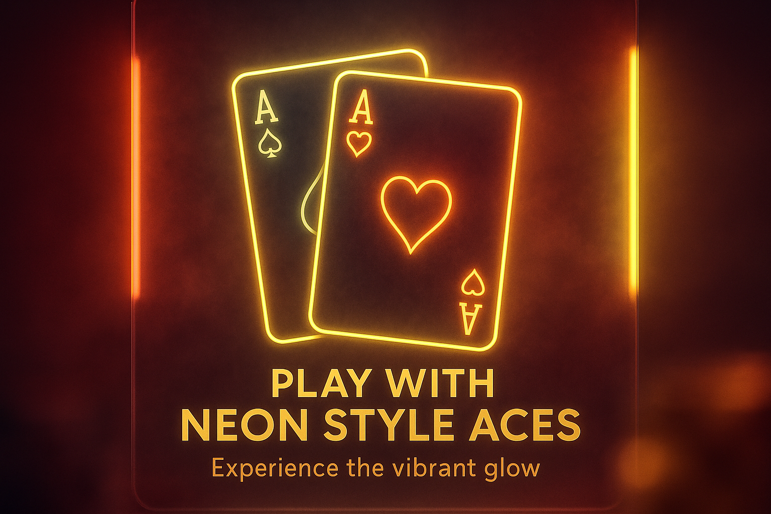 A captivating neon-style design showcasing playing cards with glowing aces. The vibrant illumination creates an engaging atmosphere, perfect for advertising.