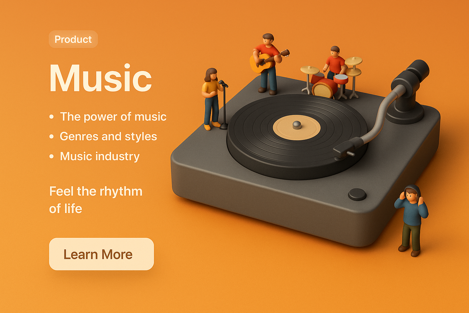 Colorful 3D Scene Featuring Miniature Musicians and Record Player