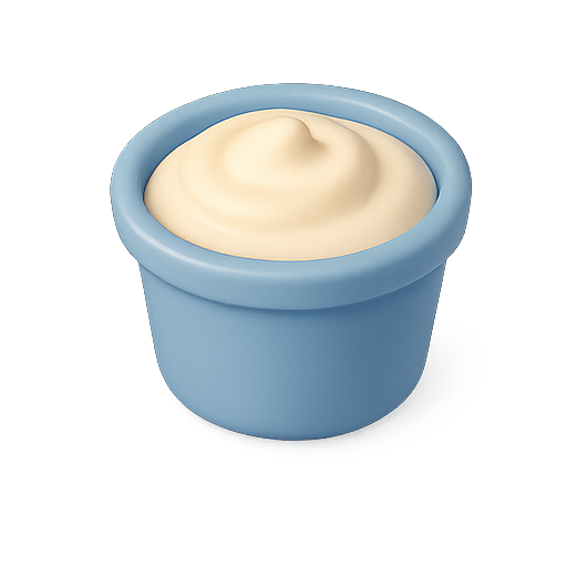 A visually appealing image of a blue condiment cup filled with a creamy substance, suitable for food-related content, menus, or packaging designs.