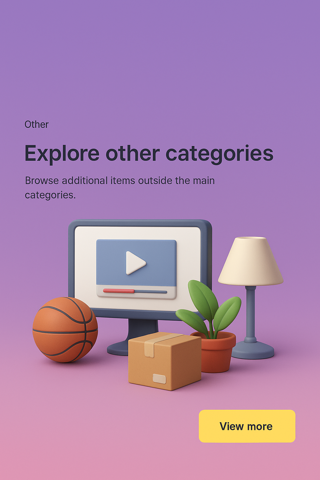 /Collection: /by davooda/Type: PNG/A zoomed-out view showcases various 3D objects including a computer, basketball, plant, lamp, and box. The design features a smooth gradient background and clear text elements.