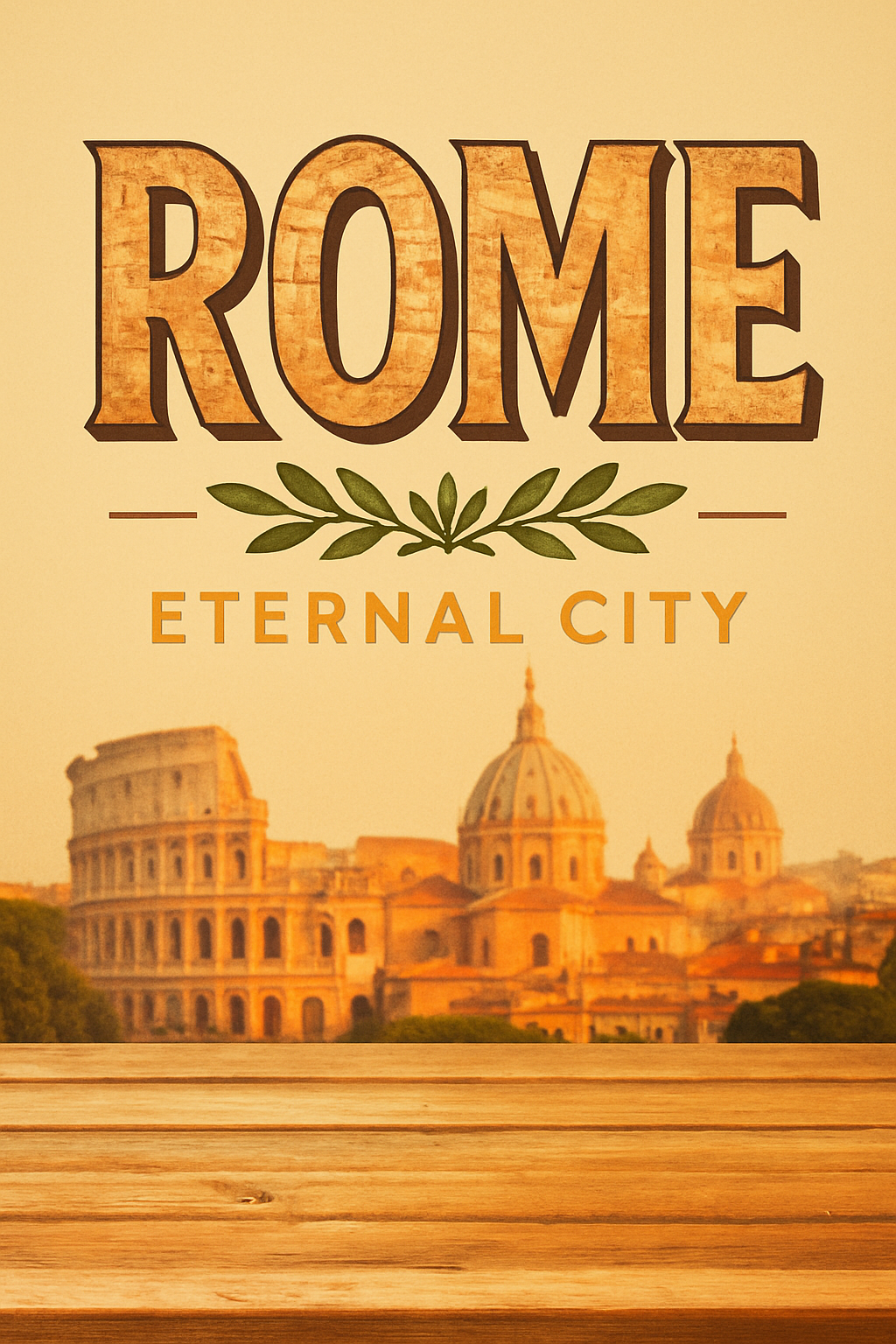 A beautifully designed travel poster showcasing Rome's historic architecture with a warm color palette, ideal for tourism promotions or decor.