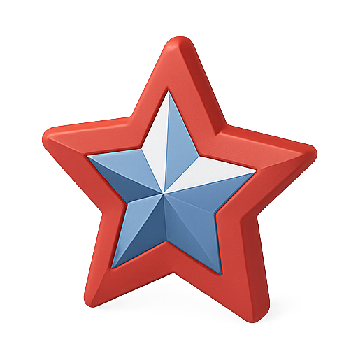 Stylized three-dimensional star icon featuring a red and blue color scheme, suitable for use in digital design, branding, or awards graphics.