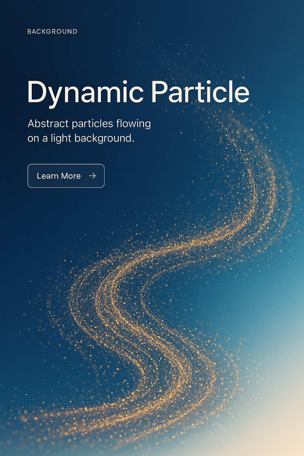 An elegant display of golden particles gracefully moving across a blue gradient background. The design emphasizes a modern aesthetic with a clear call to action.