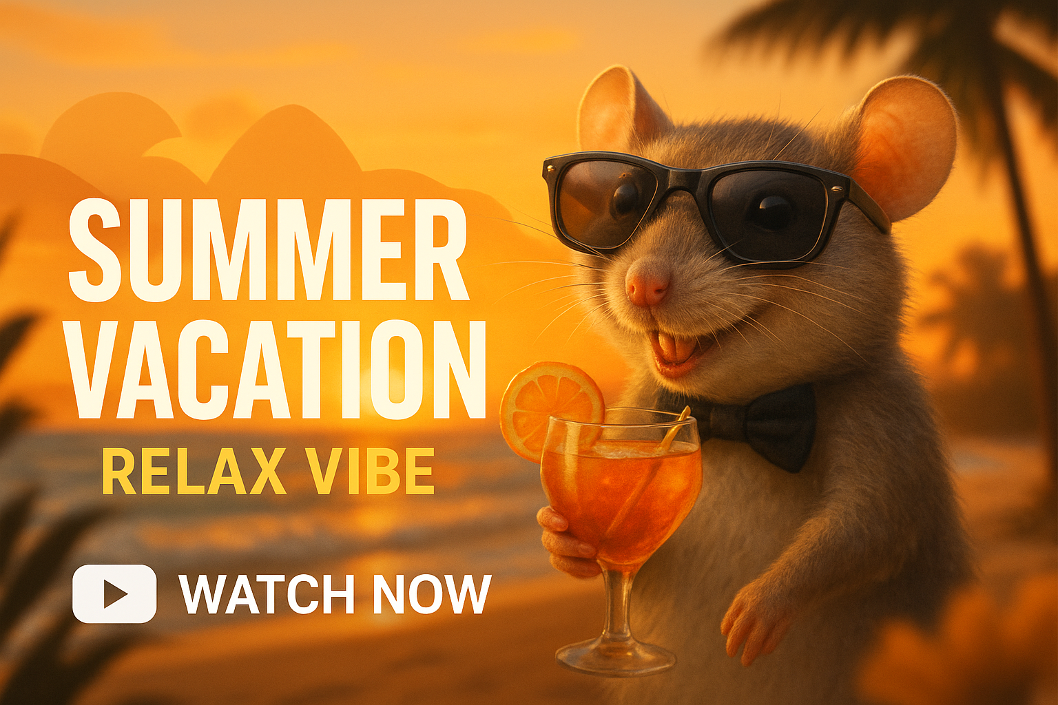 Playful Summer Vacation Graphic Featuring a Relaxed Mouse Character