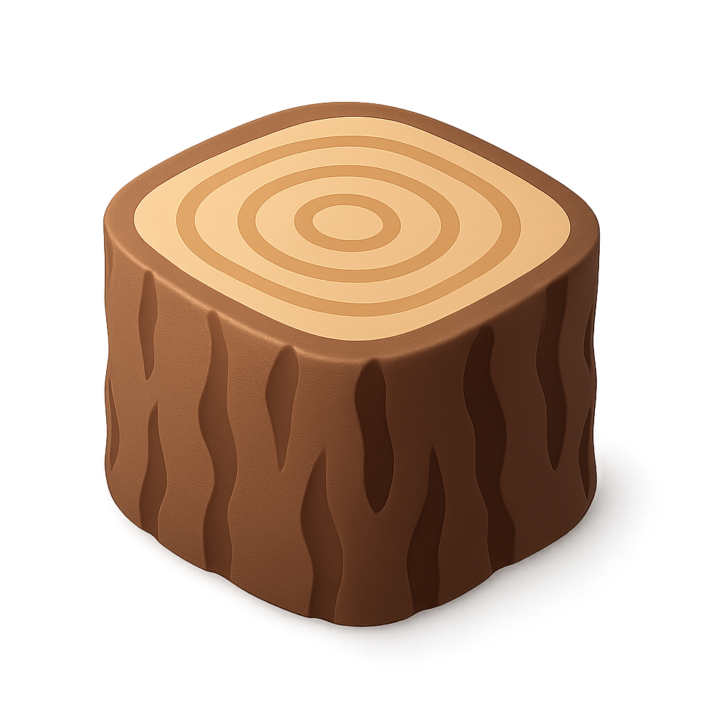 A visually appealing 3D representation of bark in a three-quarter isometric view. The design features a textured surface with layered patterns and a smooth finish, set against a soft gradient background.