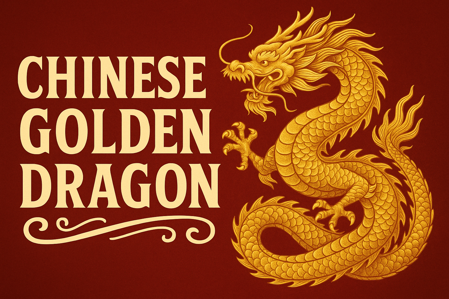 Illustration of a Chinese Golden Dragon with Bold Typography