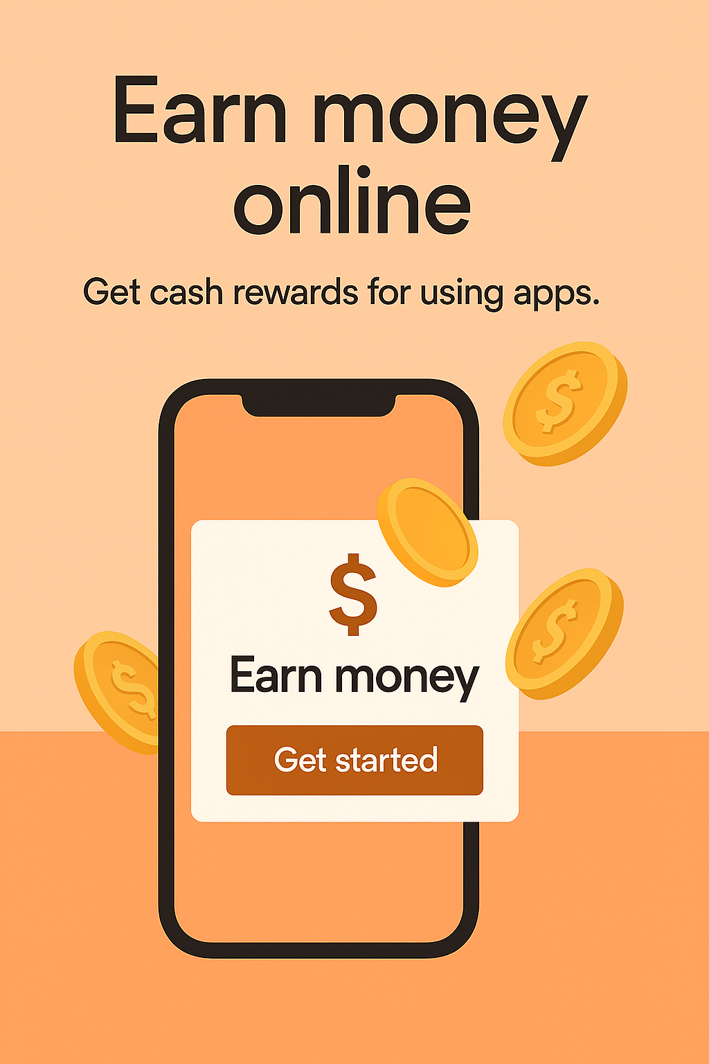 Vibrant promotional graphic showcasing a mobile app that offers cash rewards for usage. The modern design features playful elements and a clear call to action, ideal for social media marketing.