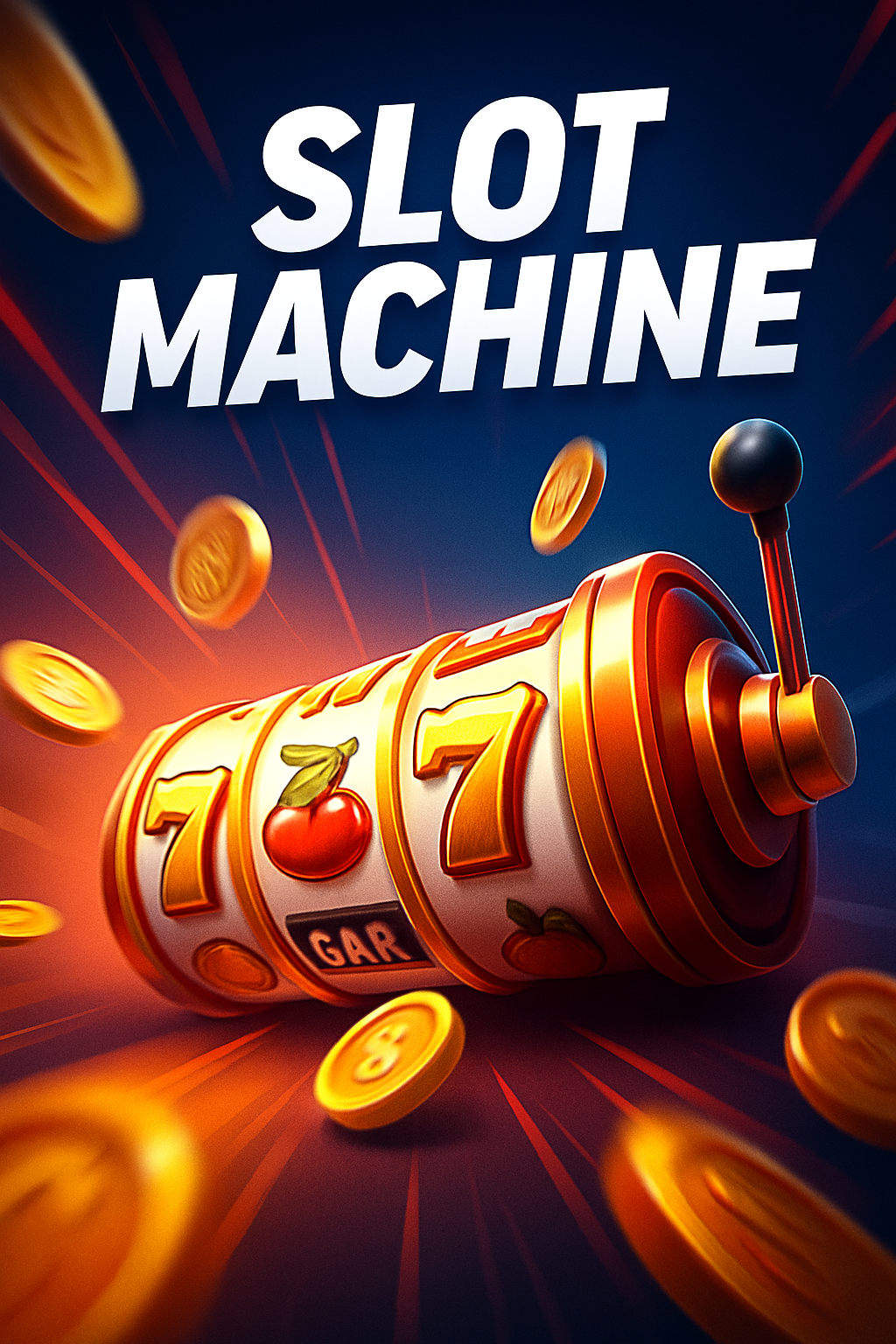 Dynamic Slot Machine Illustration with Coins and Motion Effects