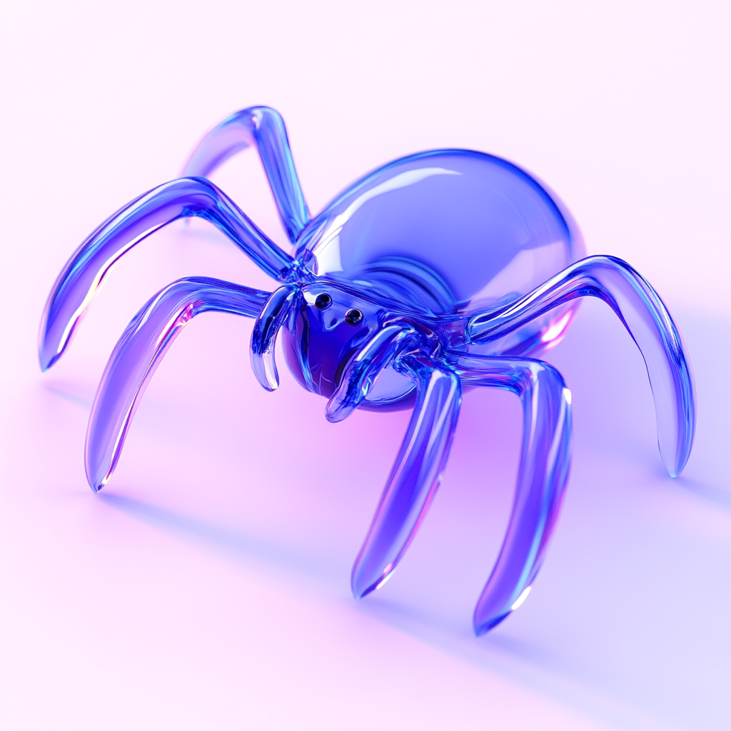 /Collection: /by davooda/Type: PNG/A visually striking 3D rendered image of a transparent spider figurine with a blue tint. The design features smooth, glossy surfaces and an artistic style, suitable for decorative purposes or digital art showcases.
