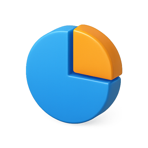 Stylized 3D pie chart icon featuring a blue base and an orange segment, suitable for data visualization and analytics presentations.