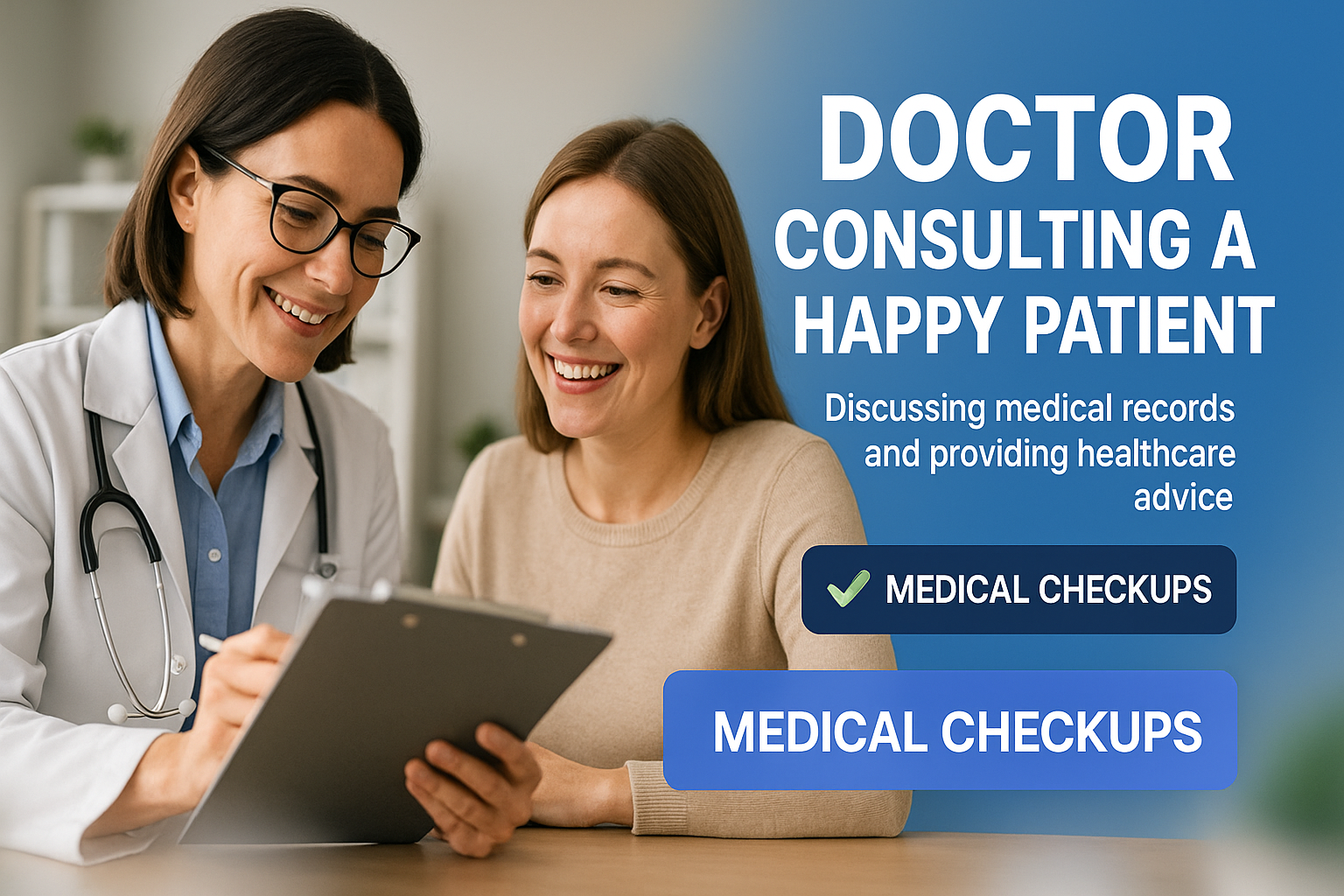 /Collection: /by davooda/Type: PNG/This image depicts a doctor consulting with a happy patient, highlighting the importance of medical checkups. Ideal for healthcare-related marketing and educational materials.