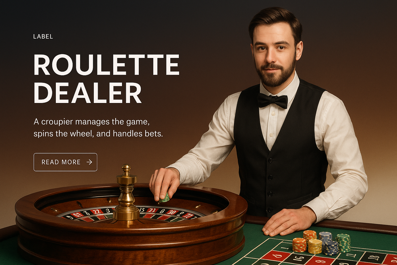 Stylish Roulette Dealer in Realistic Setting for Web Design