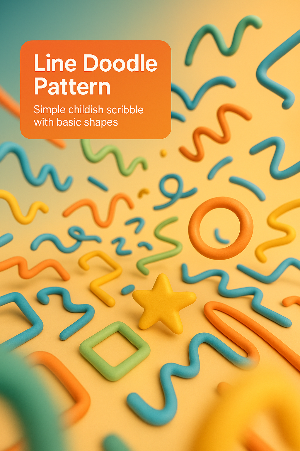 Vibrant and playful line doodle pattern featuring simple childish scribbles and basic shapes. Ideal for creative projects, branding, or children's products.