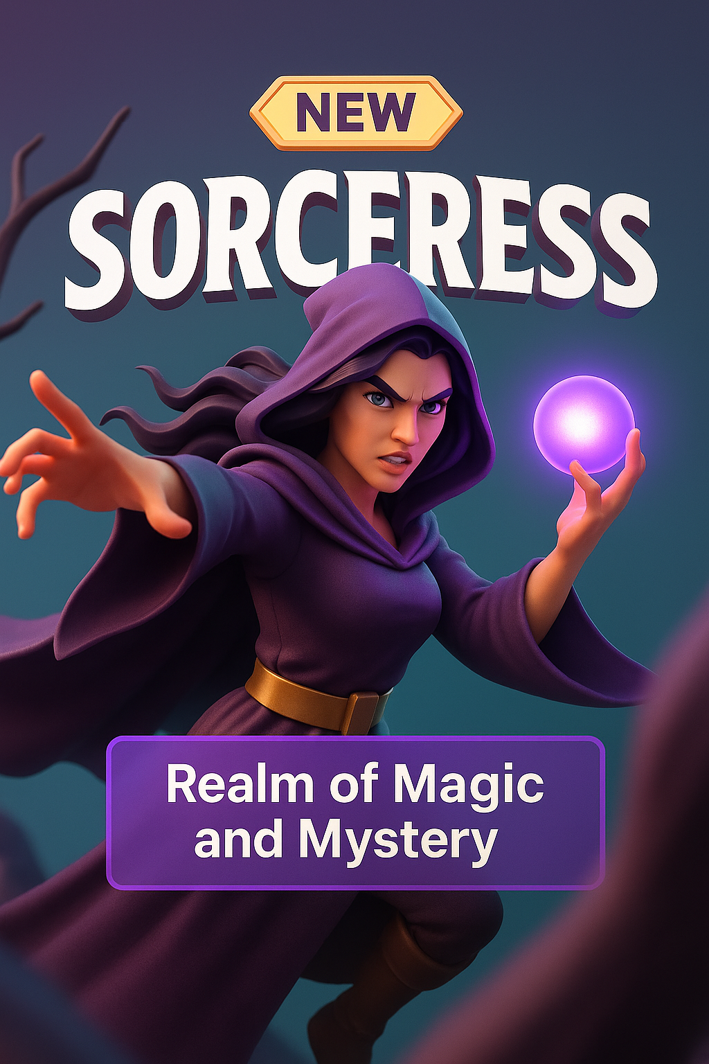 A visually striking 3D illustration of a sorceress casting magic. She holds a glowing purple orb, set against a smooth gradient background. The design emphasizes realism with clean lines and balanced composition.