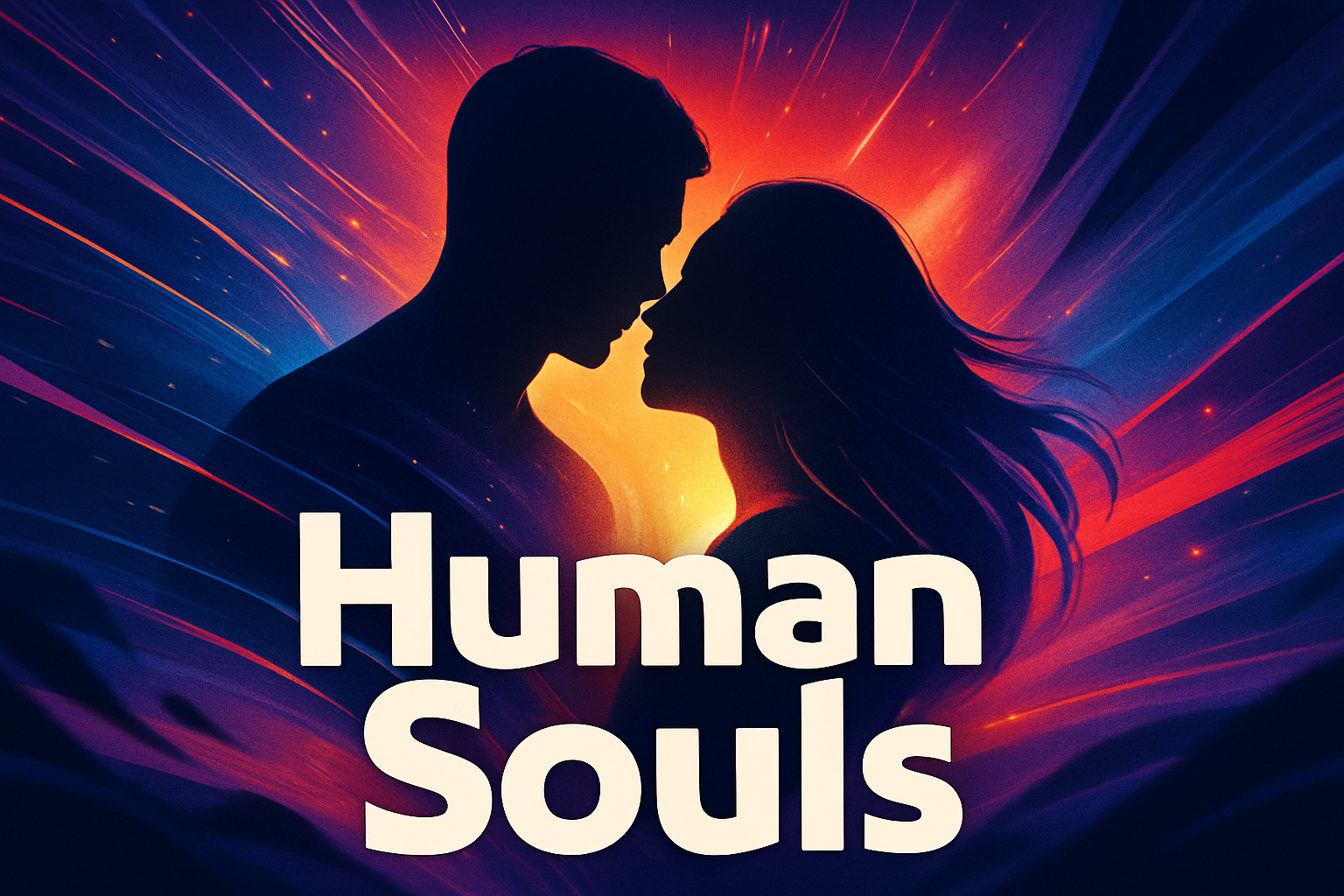 Cosmic Love: Human Souls Silhouettes in Abstract Background