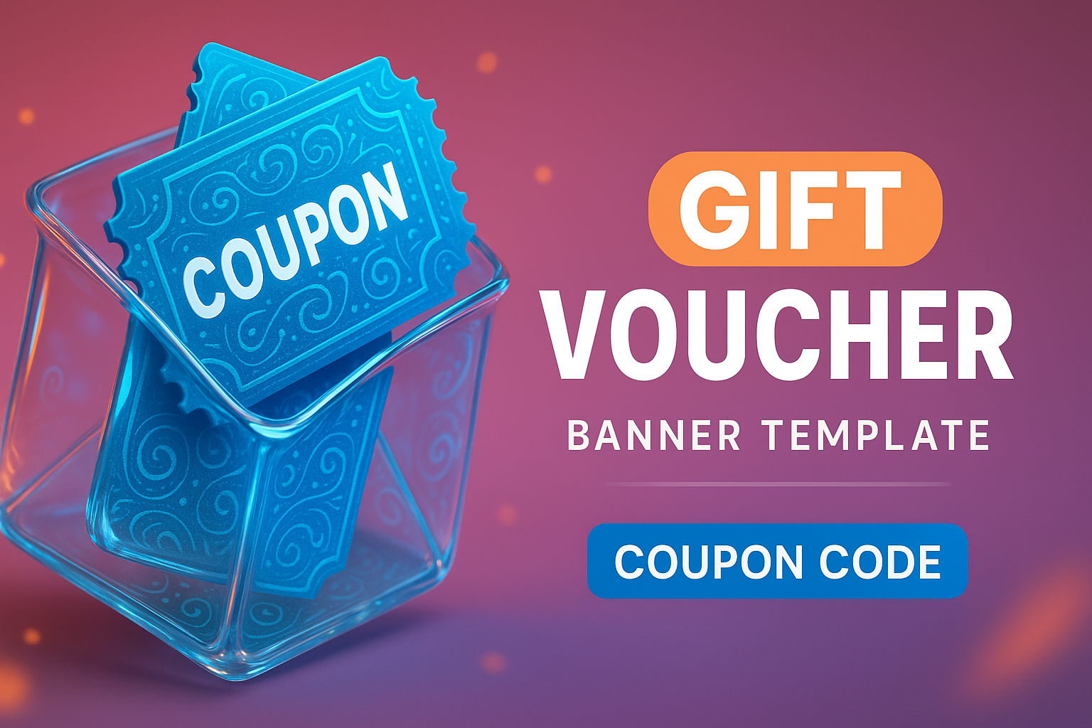 A vibrant gift voucher banner template featuring stylish coupon designs, ideal for promotional campaigns and marketing materials. The modern aesthetic makes it suitable for e-commerce and retail use.