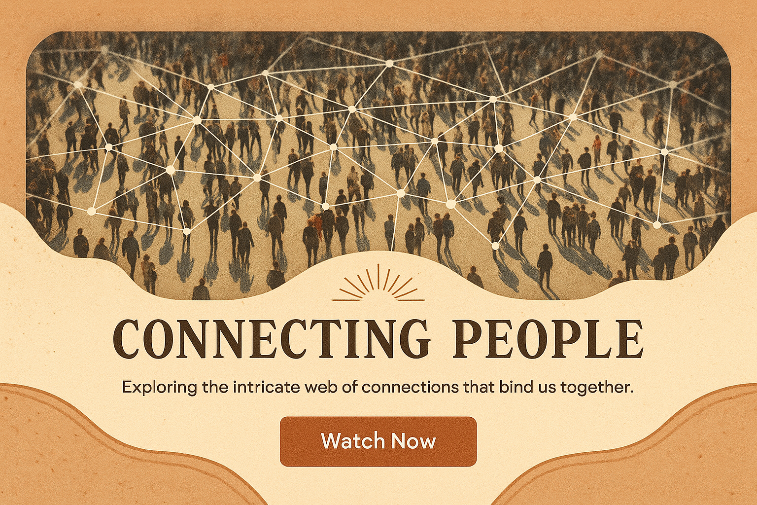 /Collection: /by davooda/Type: PNG/An artistic representation of a crowd viewed from above, interconnected by lines symbolizing relationships. The design features a boho aesthetic with engaging text elements.