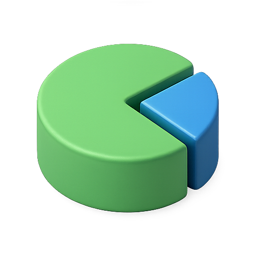 A modern 3D pie chart icon featuring a green base with a blue segment, ideal for data visualization in presentations or infographics.
