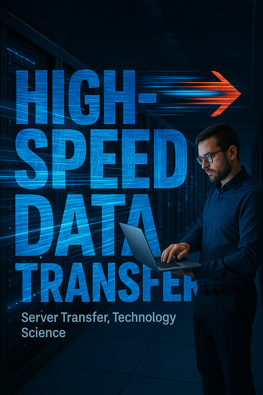 /Collection: /by davooda/Type: PNG/A modern digital graphic illustrating high-speed data transfer, featuring a professional interacting with technology. Ideal for tech-related content and marketing.