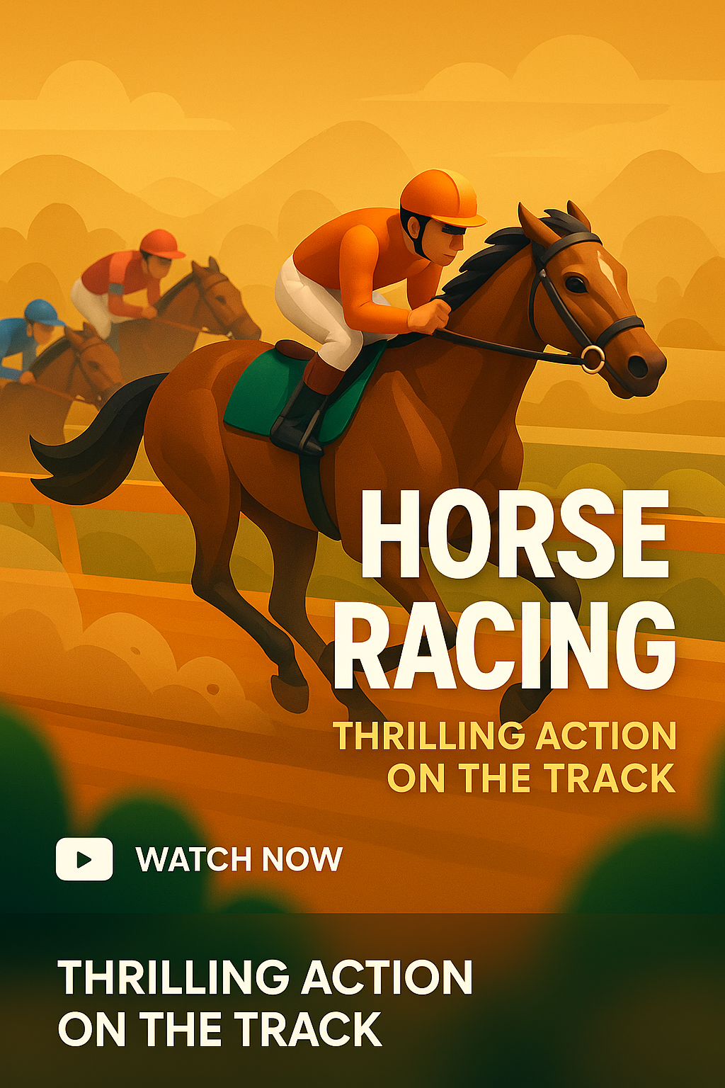 Dynamic Horse Racing Promotional Graphic for Video Content
