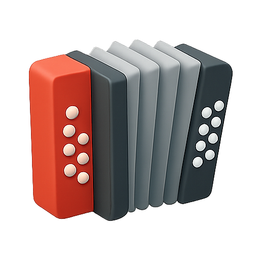 /Collection: /by davooda/Type: PNG/A modern, stylized illustration of an accordion featuring a minimalist design with vibrant colors. Ideal for music-related content, artwork, or educational material.