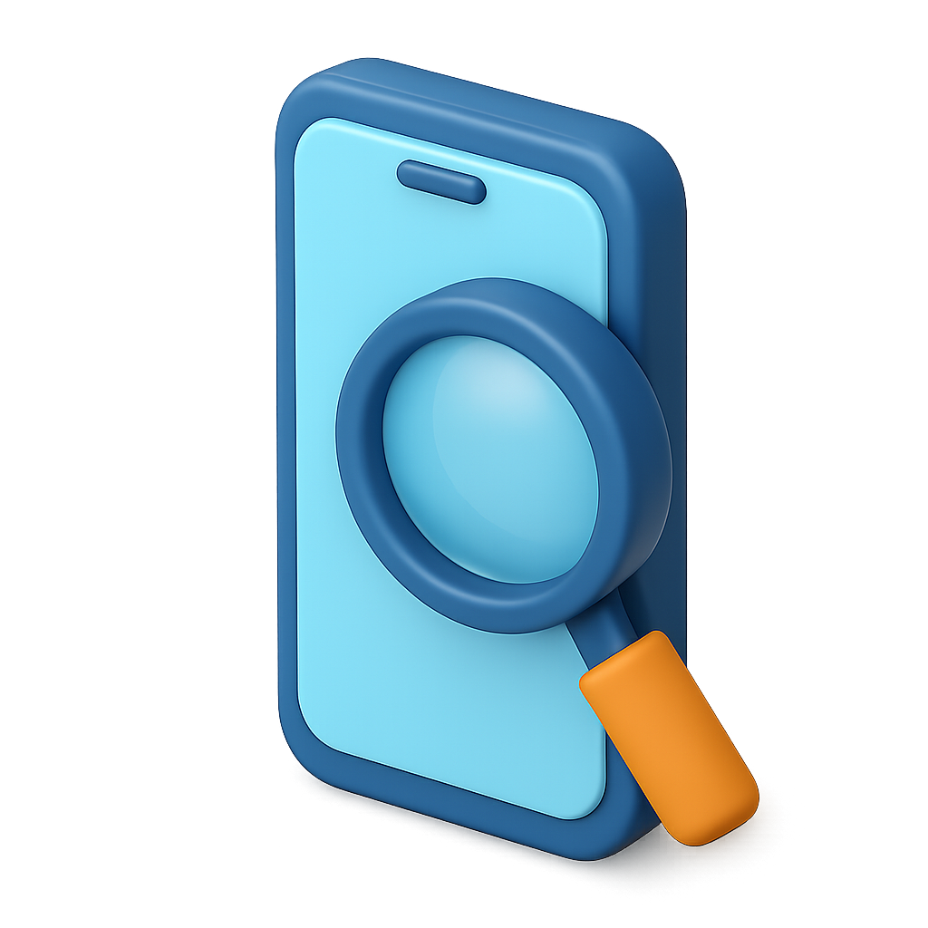 3D Phone Magnifier Icon with Isometric View