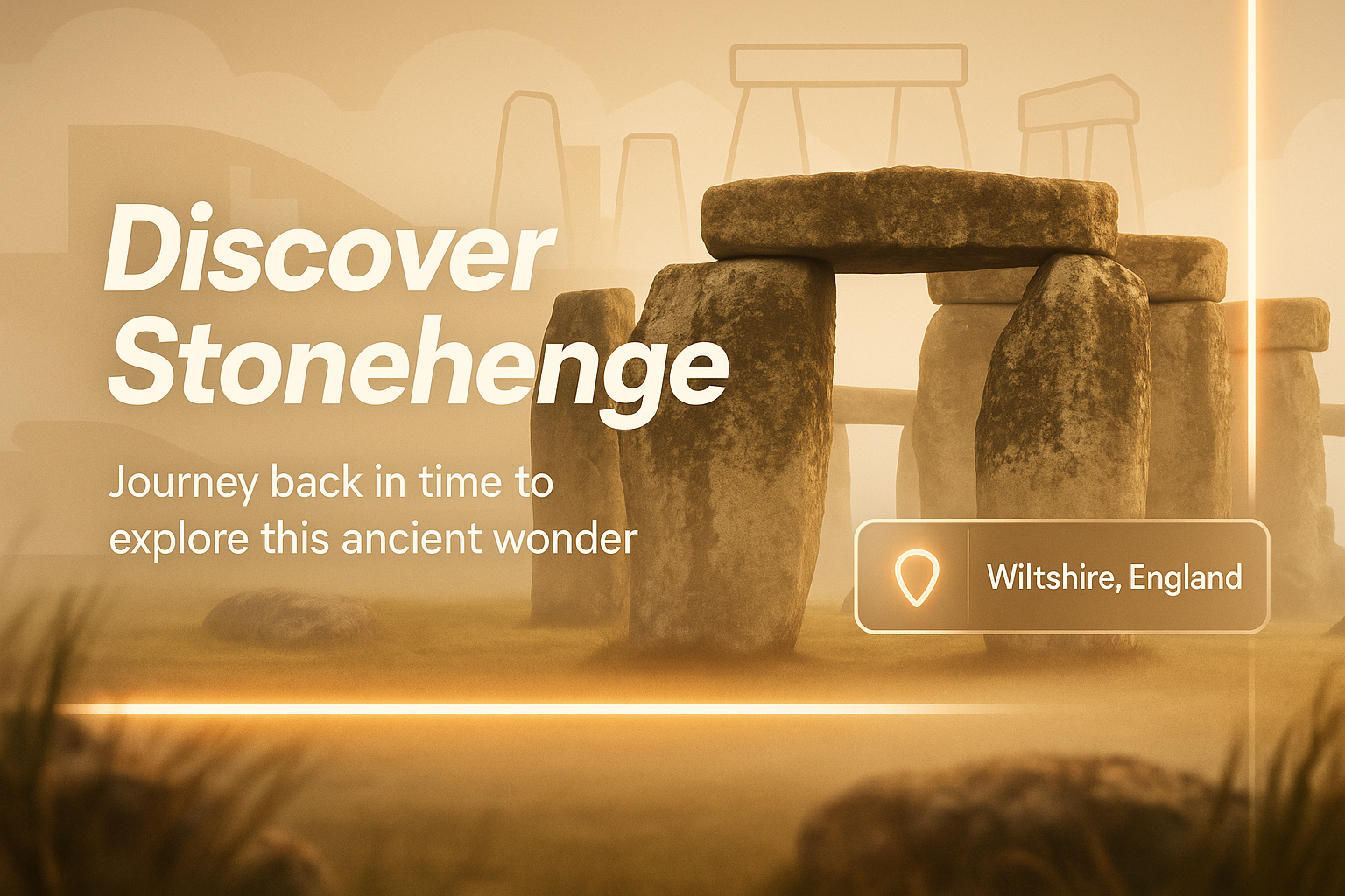 /Collection: /by davooda/Type: PNG/Engaging promotional image featuring Stonehenge, designed to attract tourists interested in historical sites. The soft color palette and modern typography create an inviting appeal.