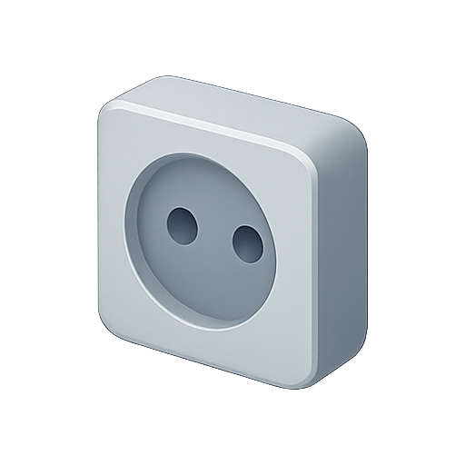 A clean and modern icon representing a standard electrical outlet, designed in a soft gray color. Ideal for technology or electrical-related applications.