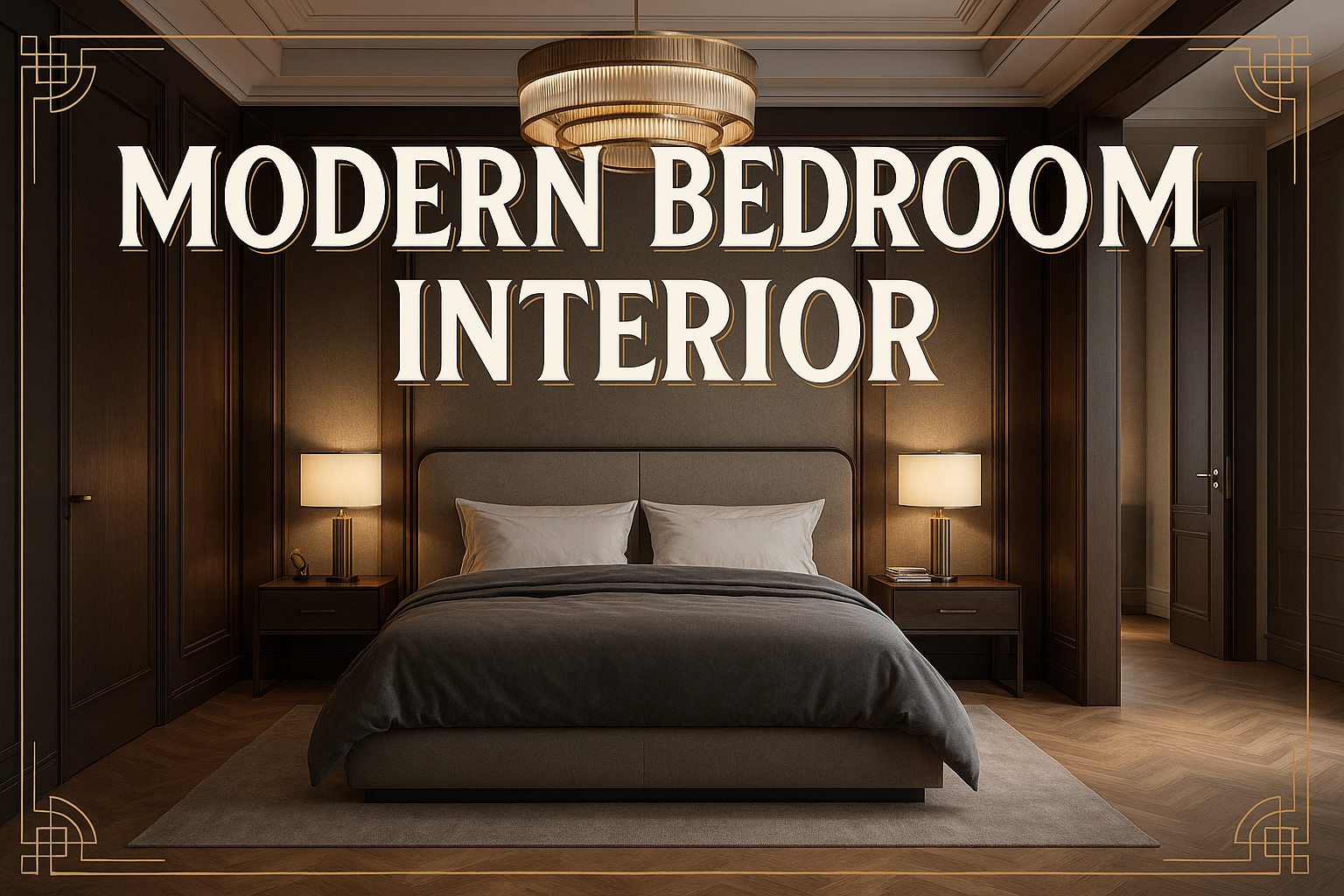 Elegant interior design image featuring a modern bedroom with luxurious furnishings and warm lighting, ideal for architecture and home decor inspiration.