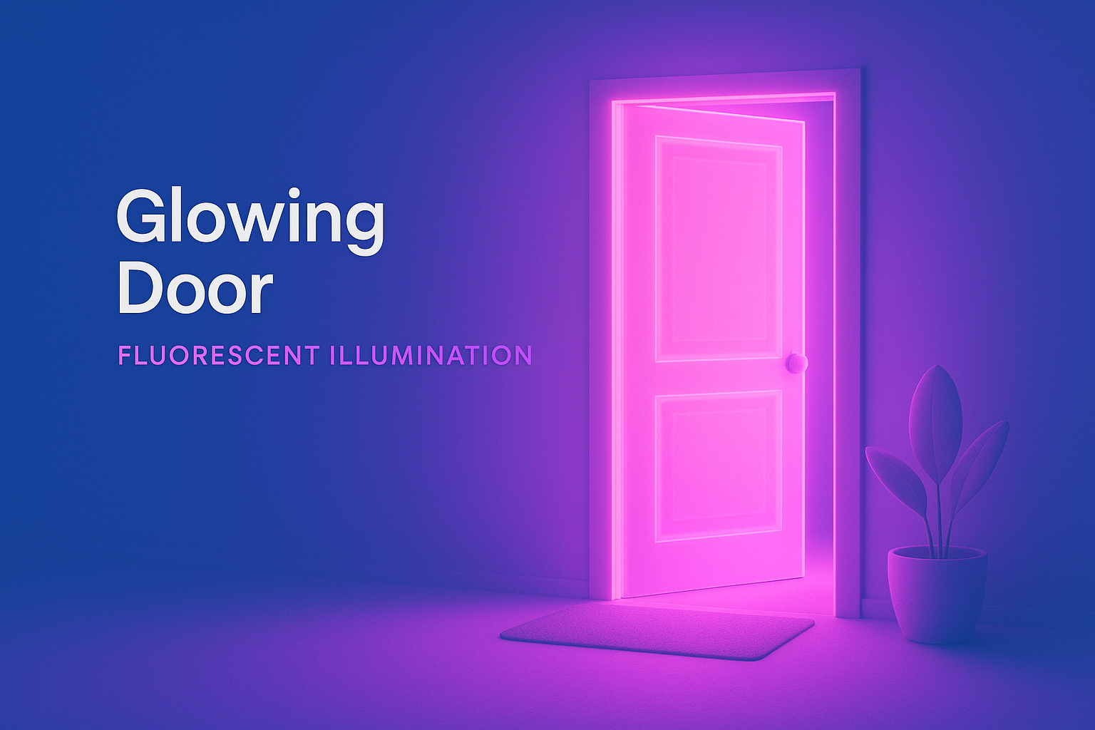 Glowing Door with Fluorescent Illumination in a Blue Scene