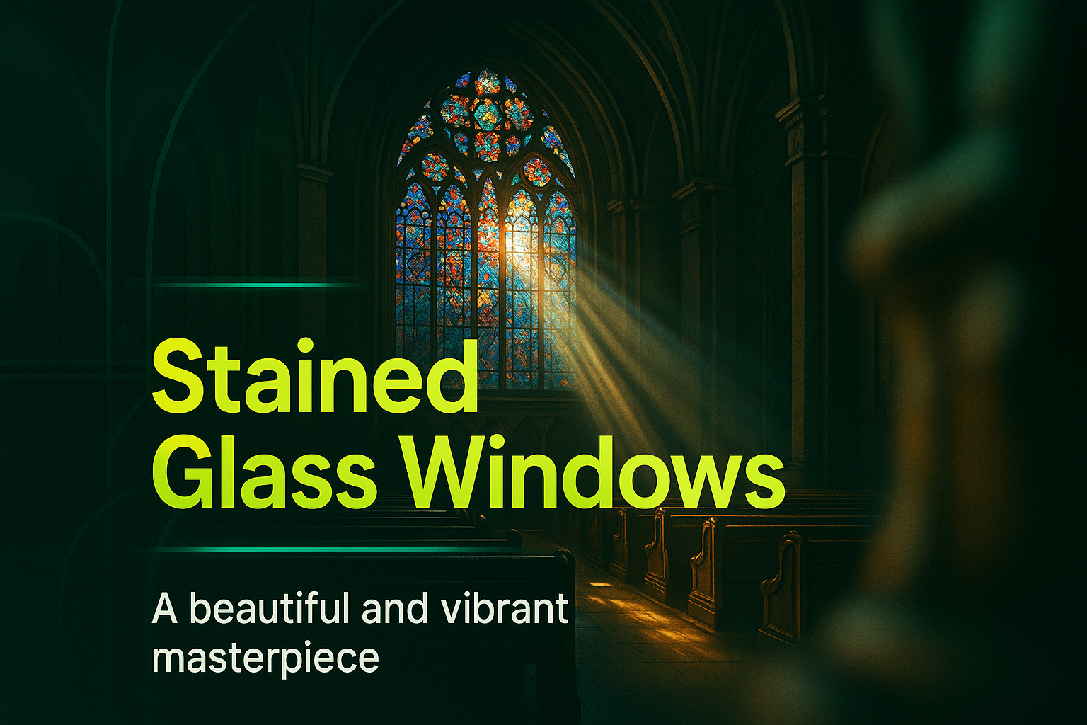 A stunning depiction of stained glass windows in a gothic architecture setting, showcasing vibrant colors and intricate designs, ideal for art and architecture themes.