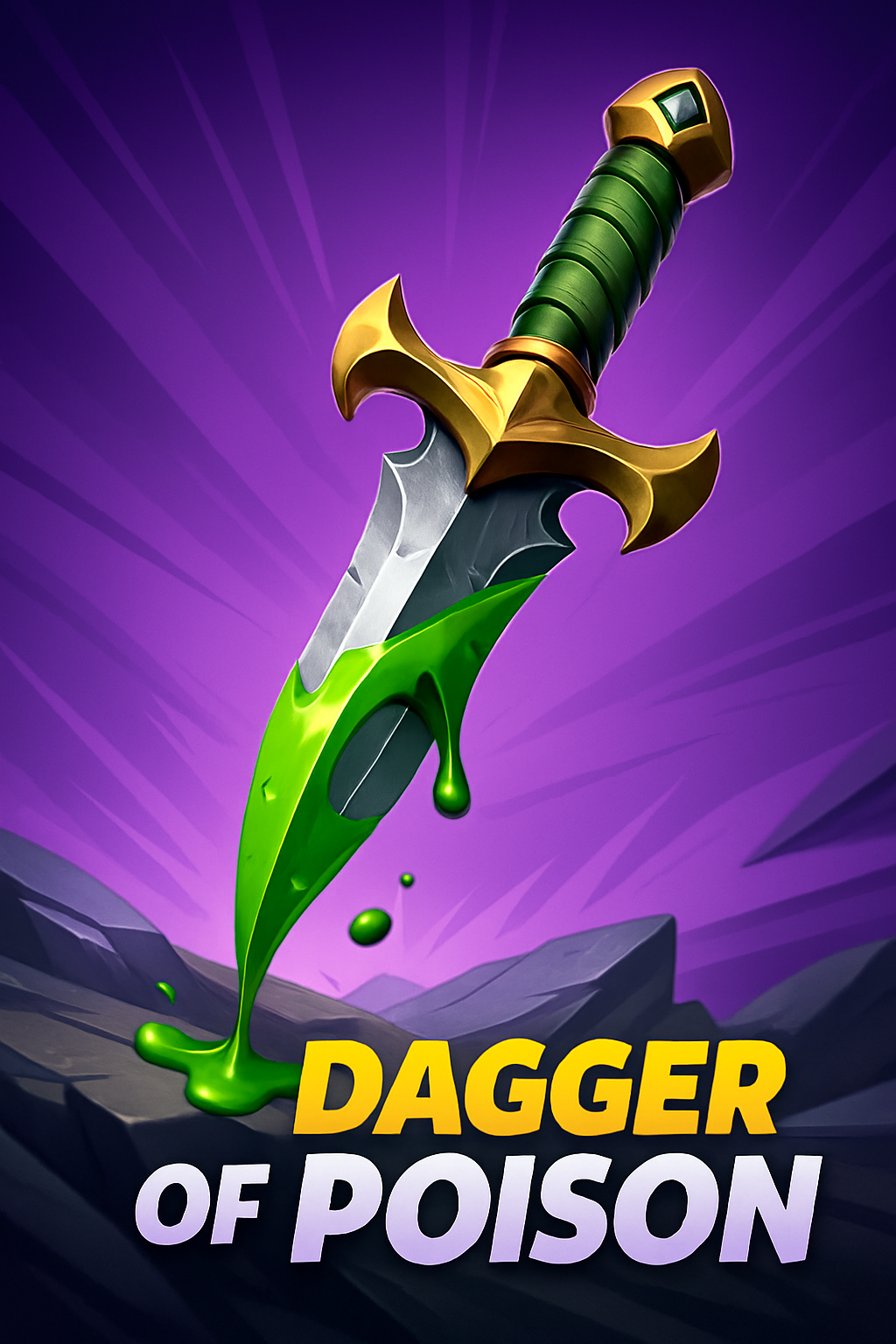 /Collection: /by davooda/Type: PNG/A striking 3D illustration of a dagger with a green poison effect, set against a vibrant gradient background. The title 'Dagger of Poison' is prominently displayed in a bold, dynamic font.